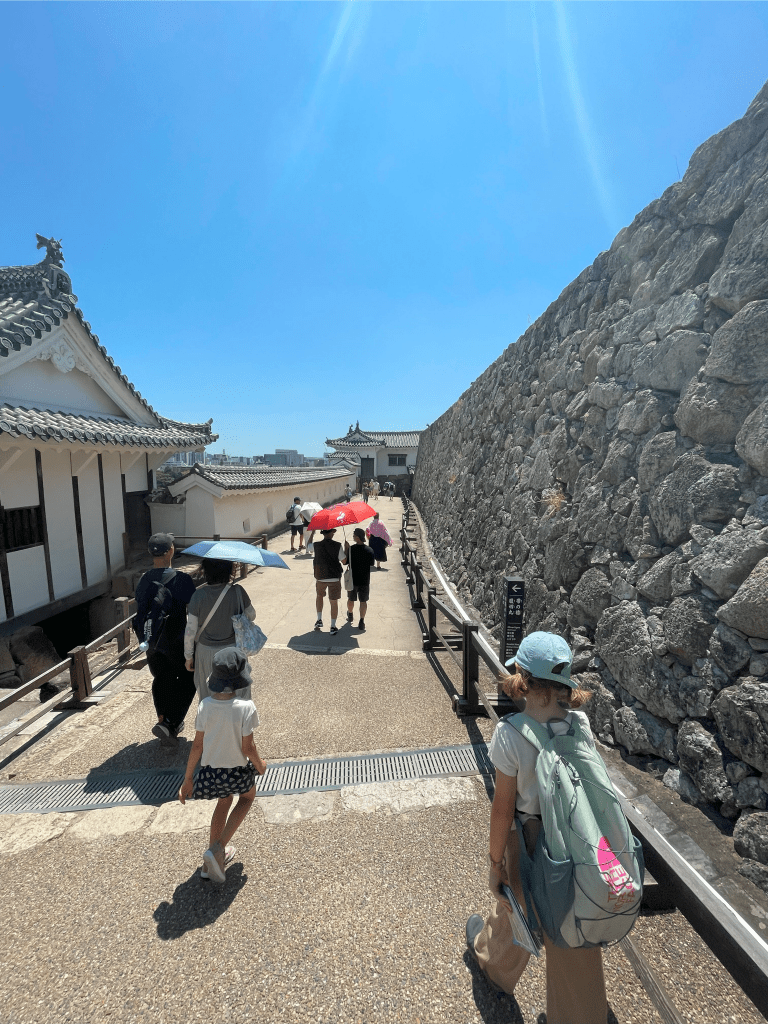 Later that day we visited the castle that Osaka Castle was inspired by, Himeji Castle. Walking the grounds around the castle was a treat, even in the sweltering heat and humidity. Once entering the castle, it’s required to take your shoes off. It was amazing to feel the smooth softness of the 400 year old wood underneath your feet; the smell of the oak, amazing. Here are a few of the sights we were able to experience.