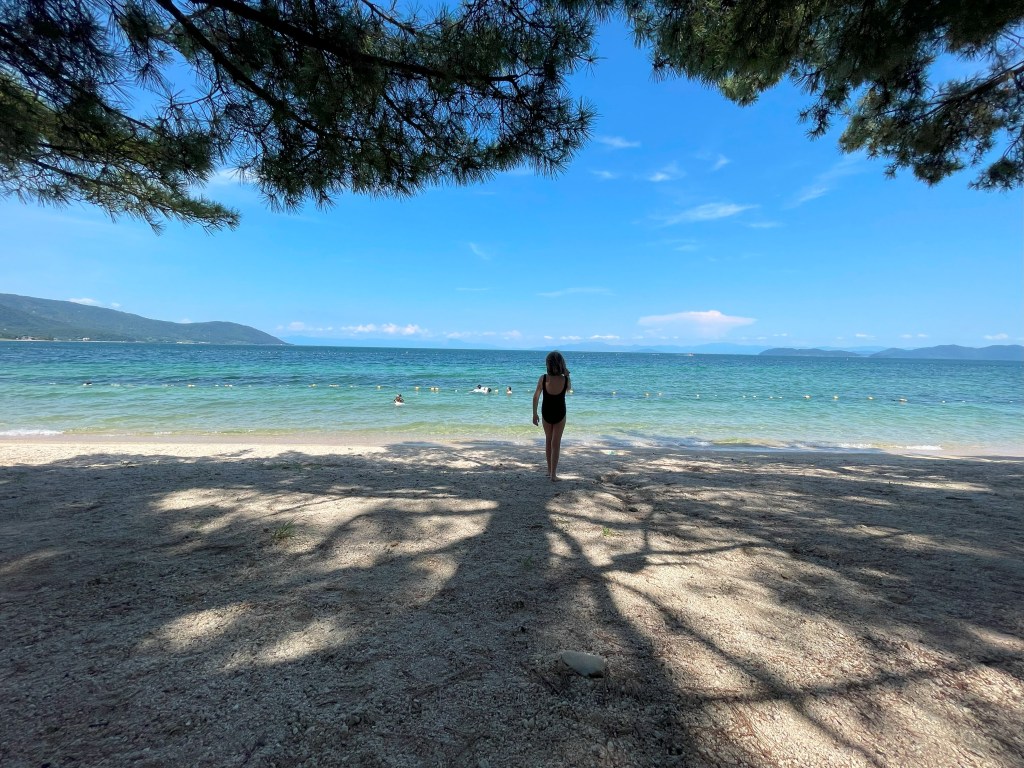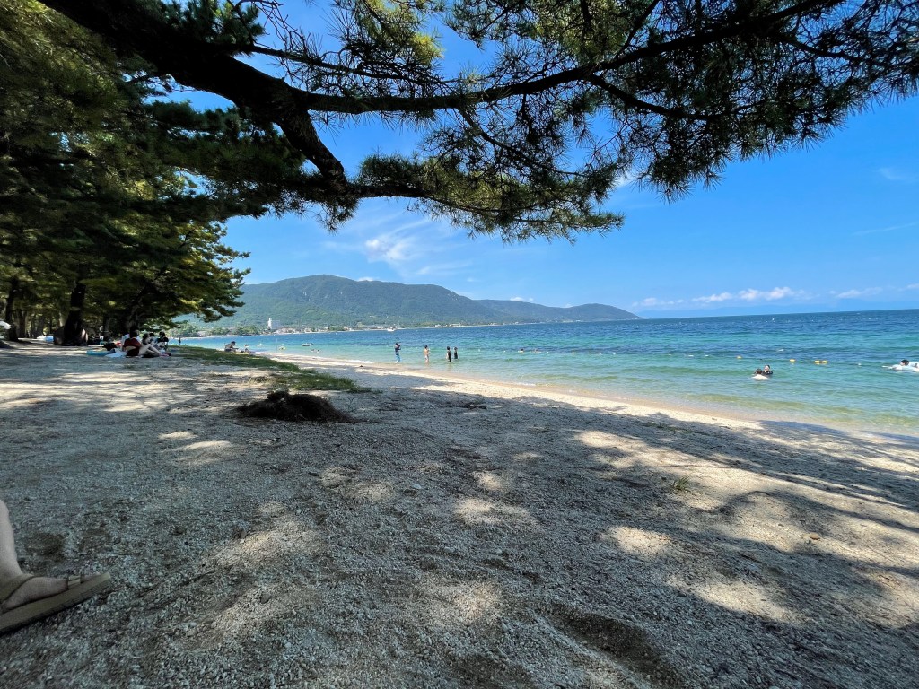 We had been spending a bunch of time in concrete jungles, it was time for some nature and to get out of the heat! Mamma Pea suggested that we visit Biwa Lake for the day. So after a brief stop at Kyoto Station to stuff our bags into coin lockers, off we went to the lake. What a relief! The day was beautiful, the waster was clear, and it was even the right temperature to convince Daddy Pea to enjoy a swim.