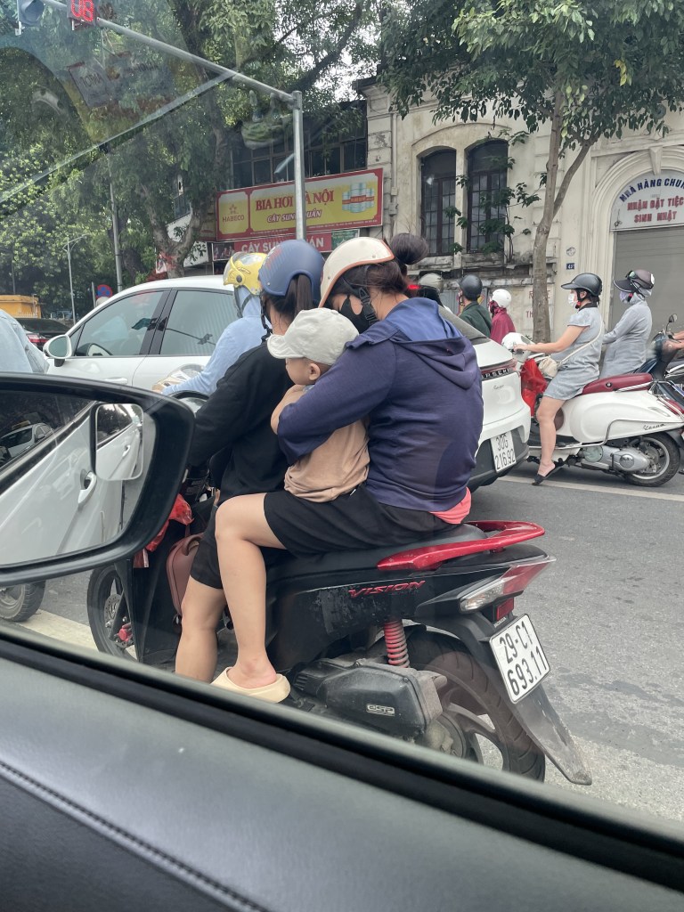 The family transitioned from the order, cleanliness, and properness of Japan to the complete madness of the streets of Hanoi, Vietnam. My stomach was in my throat as we drove in a taxi from the airport to our accommodations. The roads looked half paved, motor bikes not obeying traffic laws and driving the wrong way on the road. The taxi driver stops and says we’ve arrived; imagine someone dropping you off in the middle of NYC in the wrong part of town late at night. All we see are street vendors, no signs of apartments. So with 10 bags and three small children, Mamma Pea and I walk down narrow alley, pass a street vendor preparing the internals of a banh mi for soon to be patrons. We enter into a courtyard with several motorbikes and apartment doors, we’ve arrived at our new home.