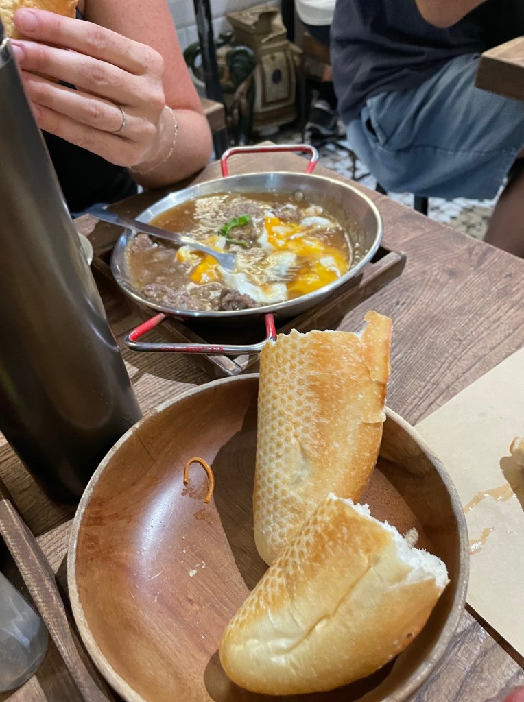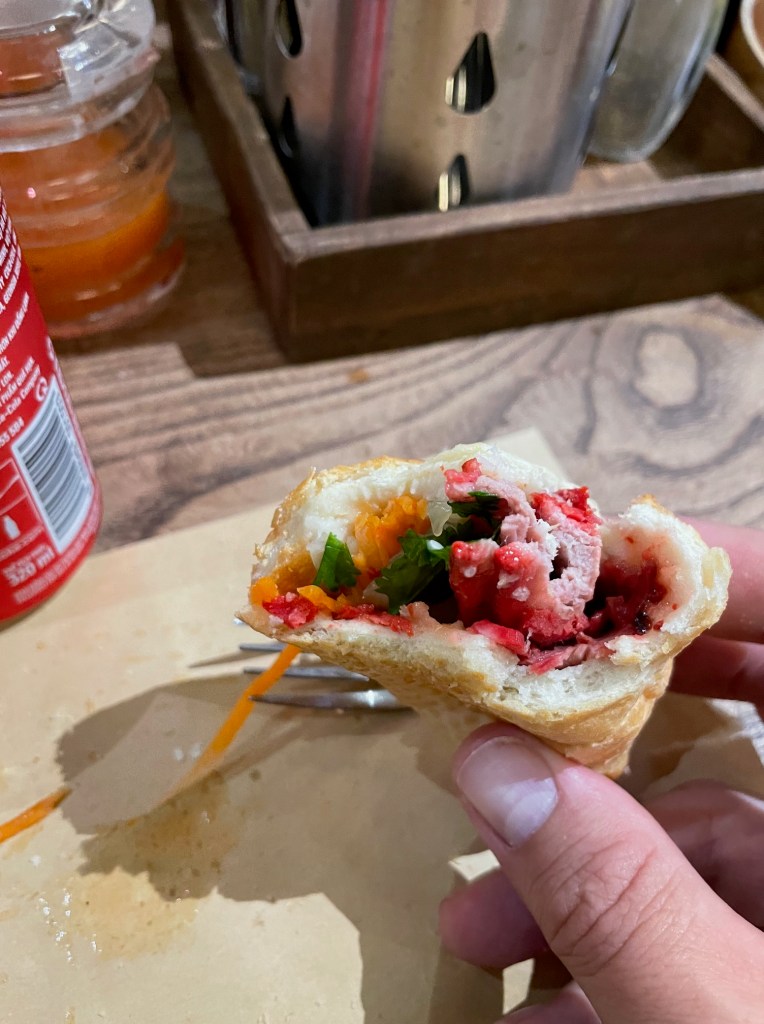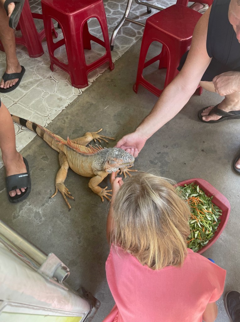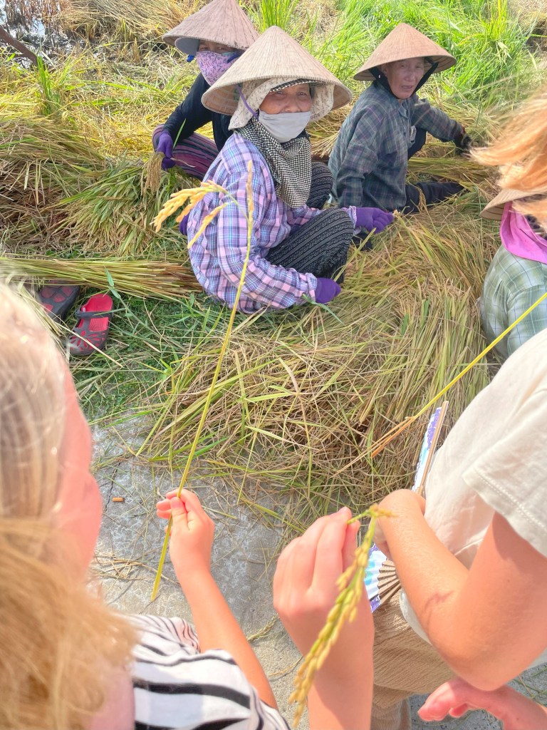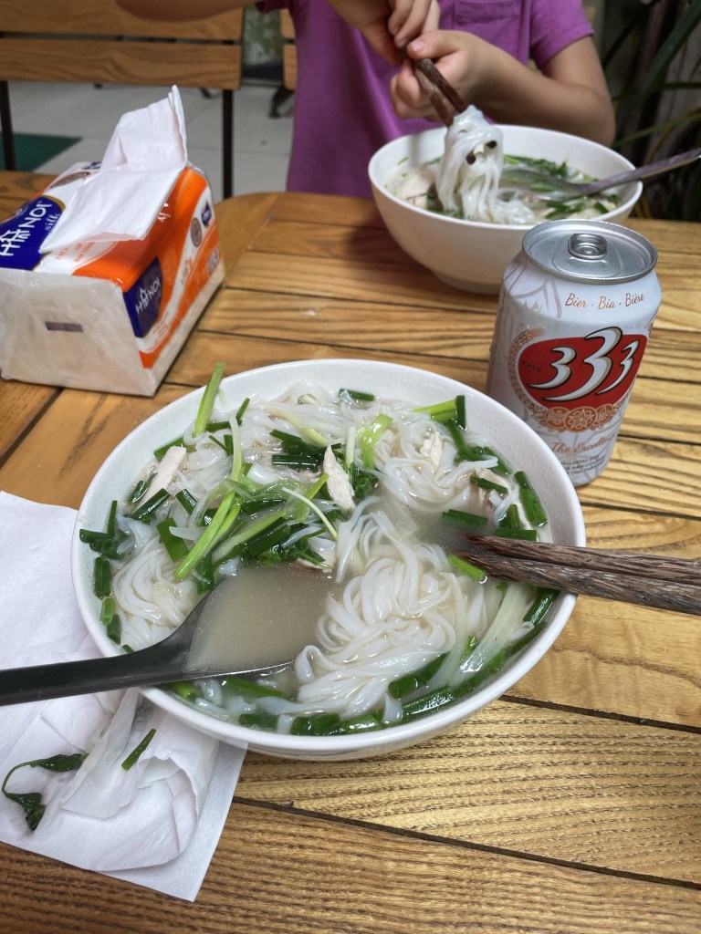 The food situation gets a lot better from here, a whole lot better. We start to take some chances and stop to try some street food. The kids all enjoy the pho, they are stepping out of their comfort zone and trying new food (they really don’t have a choice haha). We try to keep to the rule of thumb that if the restaurant looks busy, it’s safe for human consumption. But sometimes rules are made to be broken, and in a pinch we found ourselves at a fairly deserted pho vendor, which had us on edge. Were we all about to have a visit with the toilet? To our surprise, this was probably the best pho we’d have on the trip! We also found our favorite banh mi restaurants, where 5 sandwiches, a handful of drinks, and a hot plate would cost us $12; talk about breaking the bank! We’d also come to love dishes like banh xeo, goi cuon, cao lau, and, bun thit nuong, over our time here in this country.