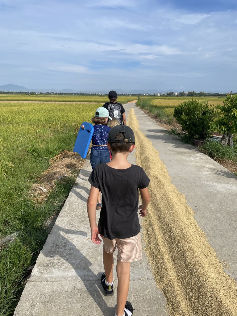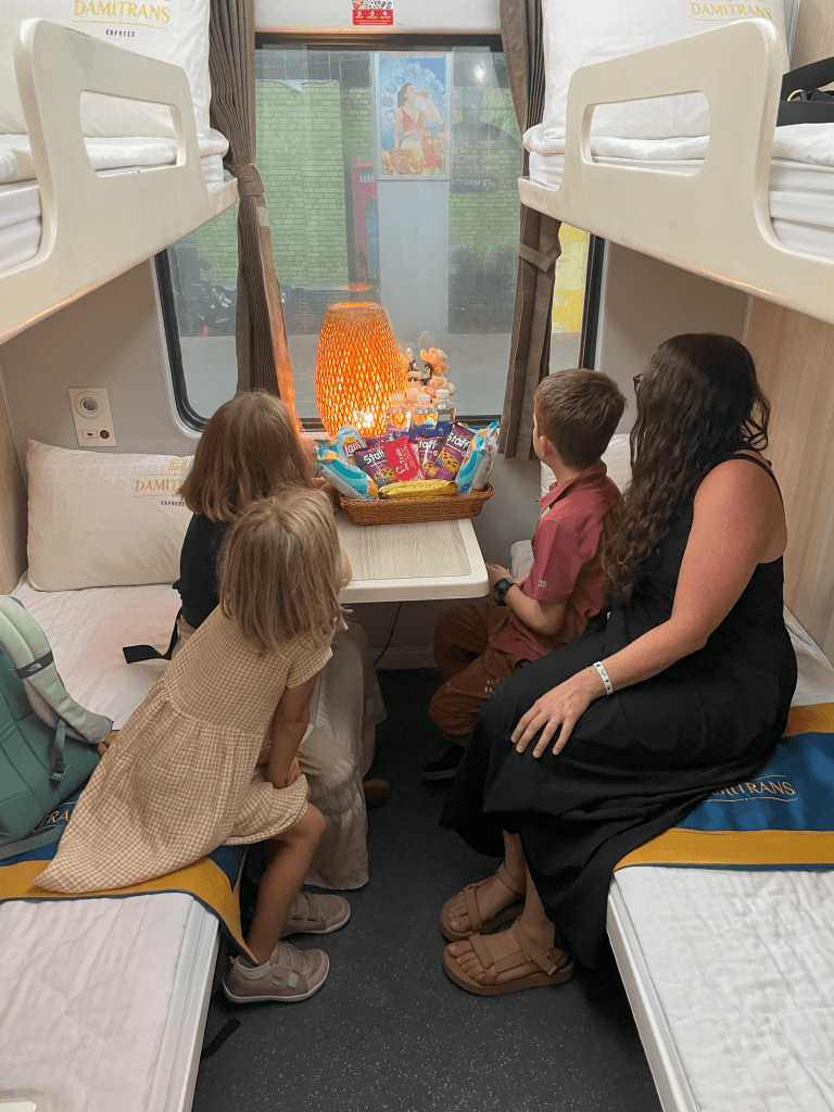 Our stay in Hanoi concluded with an adventure on a “night train” to Da Nang. The kids were excited because it mirrored a podcast that they had listened to about a couple of stowaway kids catching a ride from Chicago to Sacramento called “On the Night Train”. It was an adventure for sure, having to put up relatively small quarters and hard beds, rowdy young Italians drinking and smoking in the adjacent cabins, Little Pea losing a tooth, and us leaving some supplies behind in the bunk beds of the train. Sixteen hours later, we had arrived to our next home in central Vietnam.