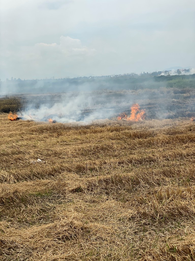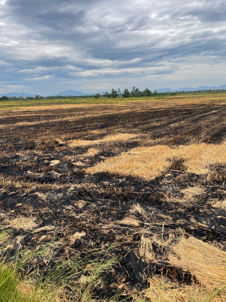 Fires are set to replenish the land; the once green-gold appearance of the fields are now a dark soot, fields ready for replanting.