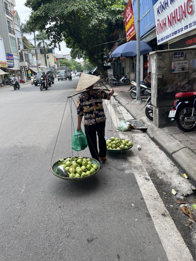 Early the next morning I venture out onto the streets in search of some breakfast for the fam. For being so early I’m amazed at how many people are out and about. Right next to our accommodations there is a grocery store, thank goodness because I have no clue on what I’m doing or where I’m going. Unfortunately there is an official looking gentleman in full uniform guarding the door; he puts his arms in the air and makes an “X” symbol with a scowl on this face, no entry for me! I continue down the road and encounter groups of retirees jolting their bodies into different positions in what looks to be a Richard Simmons video gone Asian. People are enjoying bowls of pho on this hot and humid summer morning. I see baskets of eggs at these street vendors but am too shy to ask if these are for individual sale or condiments for their breakfast soups. Finally, I find a Starbucks and grab a plethora of food and some iced coffee. I’d soon come to realize that I just spent 4 times as much on this meal than most meals that we’ll eat. Also, Mamma Pea and I decide to discard the iced drinks, not knowing how well the local water filtration systems are operating.
