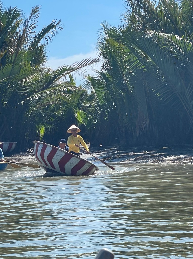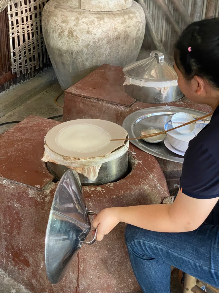 Afterward, we went to a river to see a coconut boat show, and to go crab fishing (well, we tried to anyway). Then we went to see how rice milk and rice paper were made.