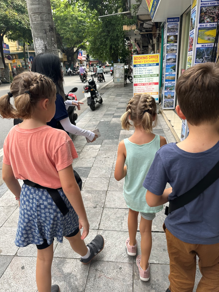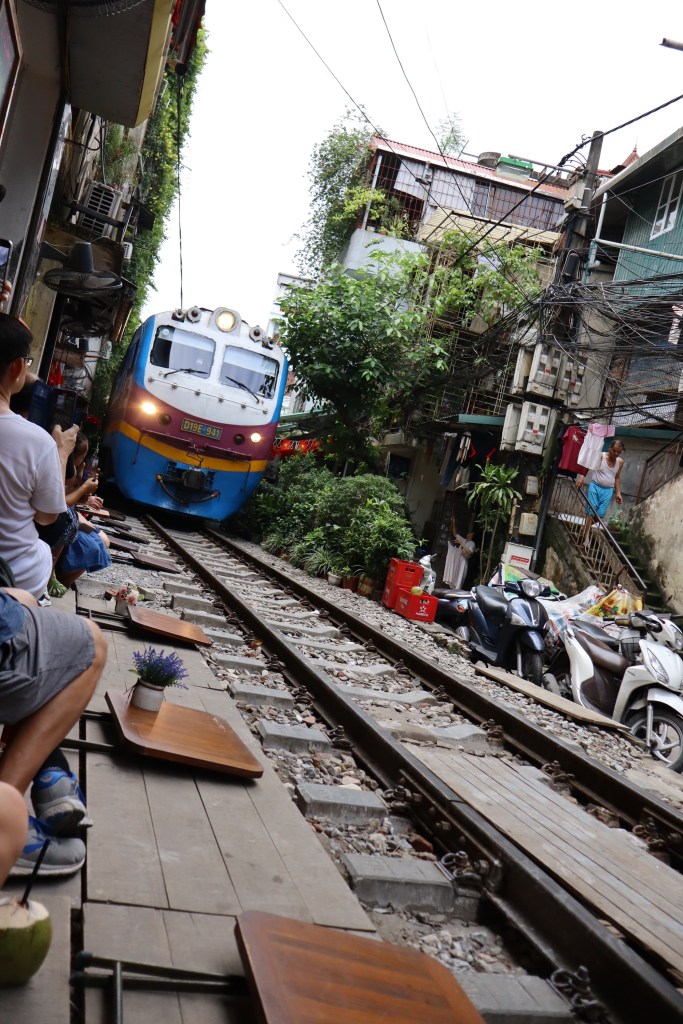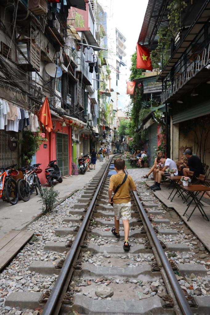 On the first two days in Hanoi, we walked around and explored the city. We went for banh mi once, and we walked around a lake. On the third day, we went to Train Street where the train was speeding through three feet away from us! We all got fresh coconut water, and Daddy Pea got coffee.