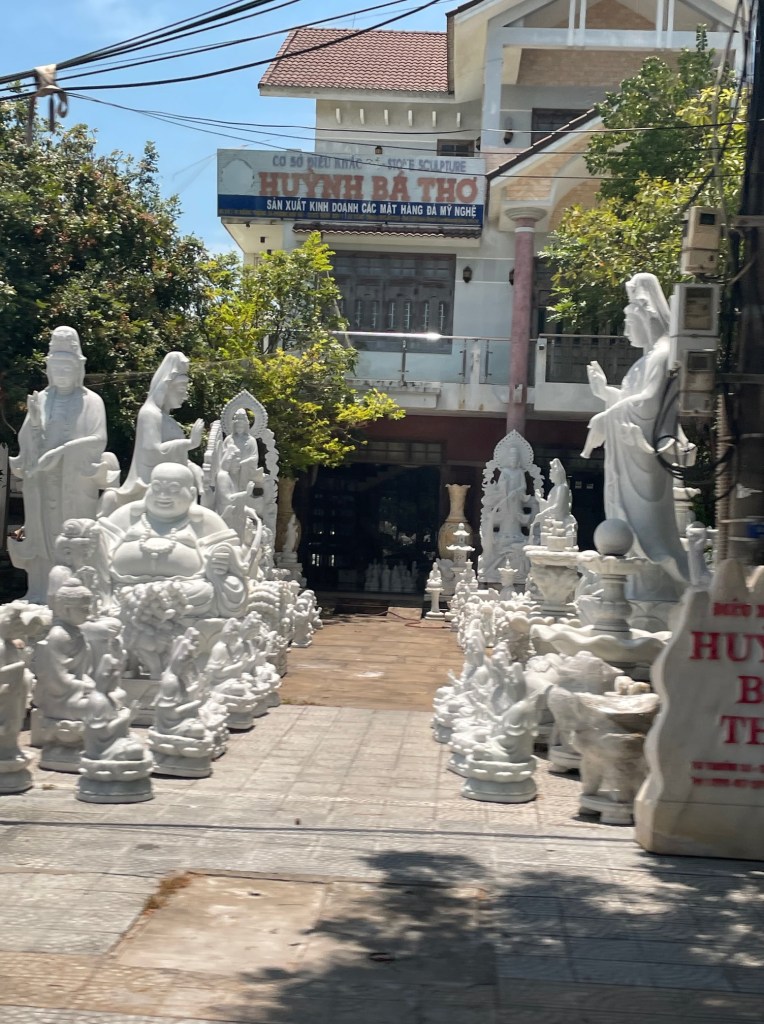 We arrived in Da Nang City and took a forty minute drive through the countryside to Hoi An. We drove past a dragon bridge, marble statues, and water buffalo grazing in rice fields. The Airbnb complex had a pool in the middle and our villa was a two-story building with three bedrooms and a dining room/small kitchen.