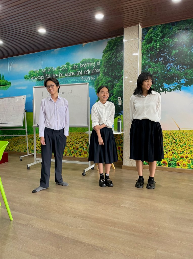 The reason we came to Ho Chi Minh was because we were going to serve at an English-speaking Christian school! The first few days, we just walked around and went to the pool. Then, we went to a full day of serving at the Kingdom Light International School. LP taught the chapel service to the students at the school, and then our family went to lead the English classes for the day. We played games and had conversations to help the students practice speaking English. In the middle of the day we had a lunch break. We met up with the founder of the school, who treated us to a delicious buffet! After lunch, we went back to the school for the next half of the day.