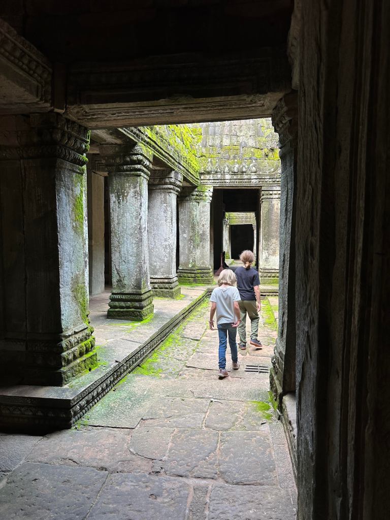 We explored Angkor Wat and two other ancient temples that morning, with the Bayon temple a clear favorite. Nearly deserted, except for a few aggressive monkey families, the kids had their run of the place and entered a world of pure imagination. Chasing each other through the moss-covered, stone rooms between shafts of light will be a core memory they carry through their lives. By 10 AM we were templed-out for the day (and way too hot) so we headed back for some pool time, prepared to return again in a few days to experience more history.