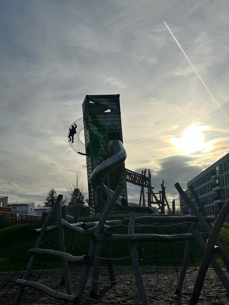 After Wittenberg we traveled to Augsburg, Germany where we would stay for 10 days over the Thanksgiving holiday. The town is about 45 minutes outside of Munich by train, and ended up being a wonderful stay for us. The apartment was beautiful (the front floor was an old pharmacists office), we were close to the train station, and the old town had a delightful pedestrian zone and Christmas Market. A couple of days in we discovered that we were just a block over from a beautiful river with walking trails along both sides, and less than 10 minutes walk from one of Germany’s exceptional playgrounds. You can probably guess where we spent many of our days.