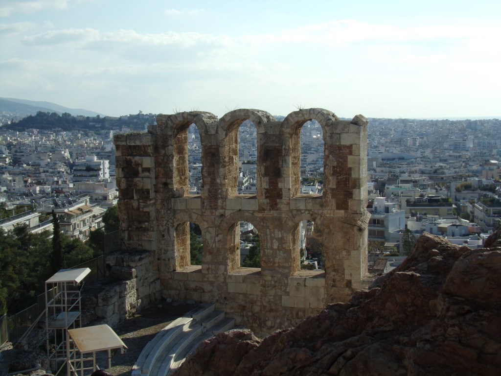 The next day, we went to the Parthenon on the Acropolis, and we got to see the old ruins of Greek temples. First, we walked around the outer grounds, and looked at all the pieces that had fallen down the hill. Then, we went up to the top. It was magnificent! The columns were so wide, that dad wouldn’t be able to wrap his arms around them if he tried, and the peaked roof was completely gone. Apparently, the Ottoman Turks decided to store their gunpowder there a few hundred years ago and it didn’t turn out well.
