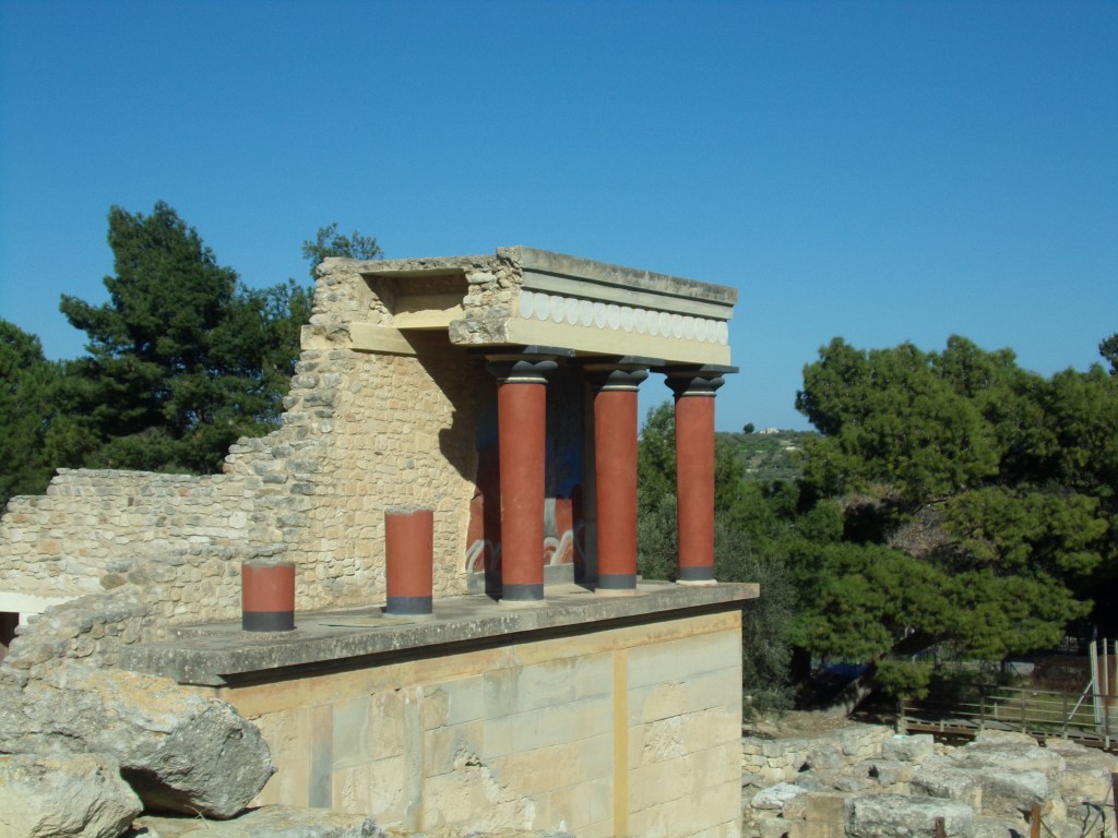 Knossos Palace used to be the center of the Minoan civilization, and I was surprised at how luxurious and large it used to be. There was a lot of outdoor space, and there were remnants of SO MANY COLUMNS!!! Many of the walls were painted red, and they even had running water (probably with a pump) and a sewage system. There were many rooms, and they all had frescoes of animals.