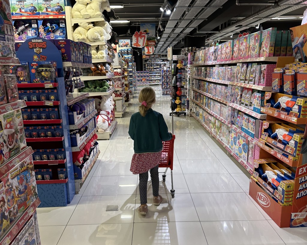 On Little Pea’s birthday, we started the day off with presents, and confetti-syrup pancakes –Little Pea’s favorite! Then, we watched the Lorax and got in the car for the thirty-minute drive to the Iraklio Fun Center. The Iraklio Fun Center has a really large indoor playground, complete with bouncy house-obstacle courses and ball pits that you get to play at if you order food. There is also a bowling center and an arcade. Sadly, the restaurant-playground part turned out to be closed until the late afternoon, so we played at the arcade and went to a different restaurant with an indoor play area for lunch instead.