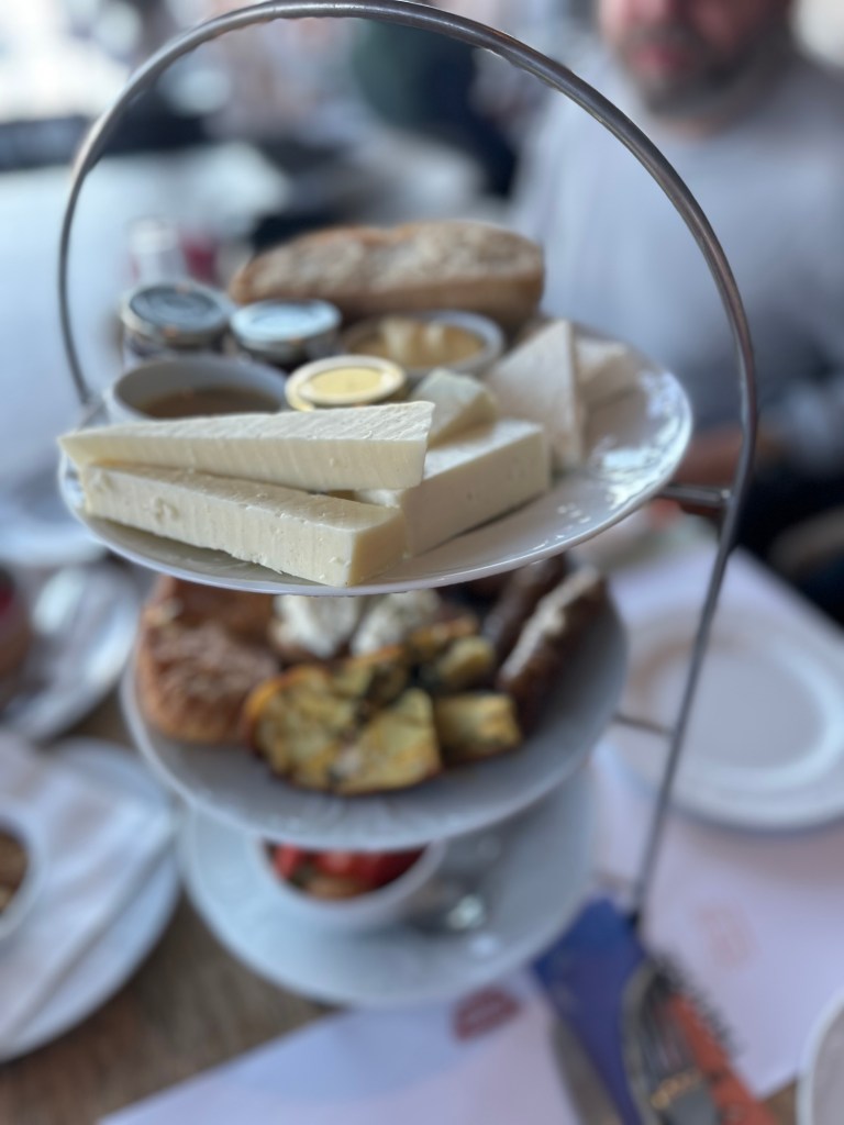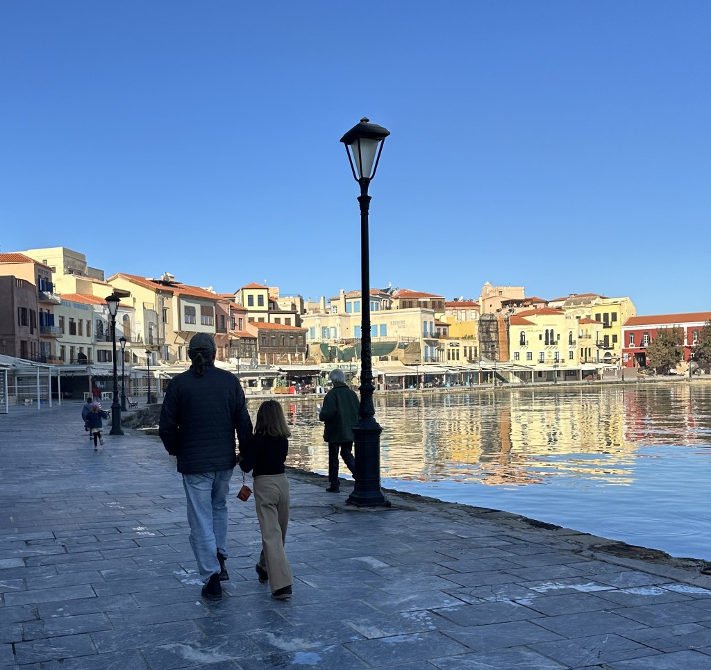 Once we got to Chania, we checked into our hotel and rested for a while. Then, we went on a walk and ate dinner at a restaurant by the port called Maiami (I recommend the fried olives, they are olives with breading on the outside and are stuffed with cheese!). The next morning, my mom and I shared an AMAZING Cretan breakfast. They had all sorts of things, spinach pies, meat, Greek yoghurt with granola and fruit, bread, cheese and jam….. After walking around a bit and doing some shopping, we started heading back to the Airbnb. On the way back, we met up with a local pastor and his wife from a church we had visited to have lunch together. Mom’s favorite part about the trip was the traditional Cretan breakfast and walking around the old town.