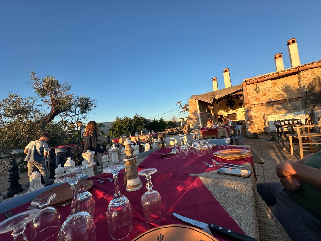 Me and Dad arrived at the water park at approximately 10:00 AM. When it opened, we were the first to get in. The slides were fun,and there was a three story tall one where you could go face first. We got slushies and enjoyed the day.That was fun. But really, this part is about dinner. The Dinner. Some ‘neighbors’ we knew nothing about invited us to an ‘aperitivo’ which could mean a drink, a drink and snack, or a small dinner. AND THEY DIDN’T SPEAK ENGLISH!