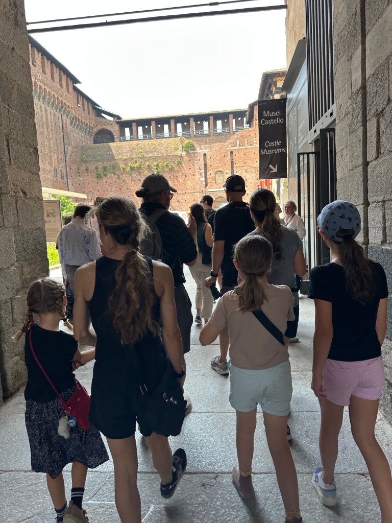 Yep, it’s me! Middle Pea, broadcasting from Italy! The Peapod landed in Milan, Italy late at night and walked to our apartment. We saw a massive door, two dads high! There was a smaller door inside the big door that we went through and stepped into an apartment build fit for a king! There were arches and marble staircases, courtyards and an elevator with a door fit for a palace… but we were TIRED. So tired that I almost fell asleep while I walked up the stairs.