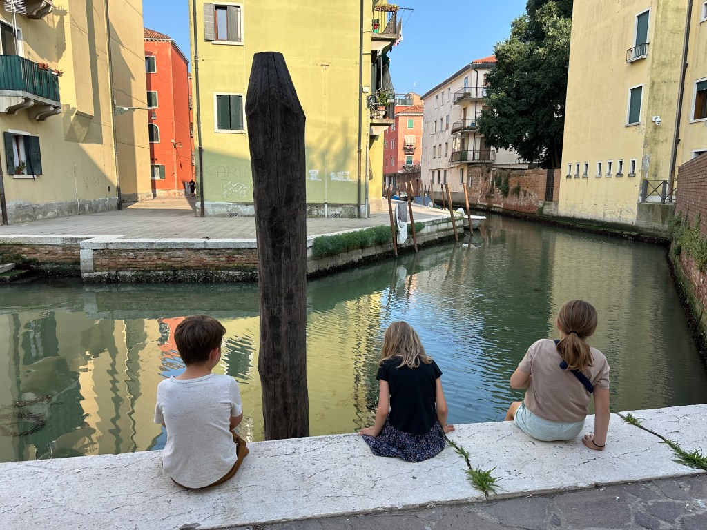 I was tired as we stepped into our AirBnb so I didn’t appreciate our walk by the grand canal and thought it was just a regular canal. We reached our AirBnb and took off our shoes. Before I could take a step Little Pea was running like mad toward me with a…stuffy apple? And a stuffy pepper? In her arms? (A stuffy is what we call a stuffed toy). Then we checked a bedroom and there sat, in their glory, a stuffy elephant and a stuffy hippo!