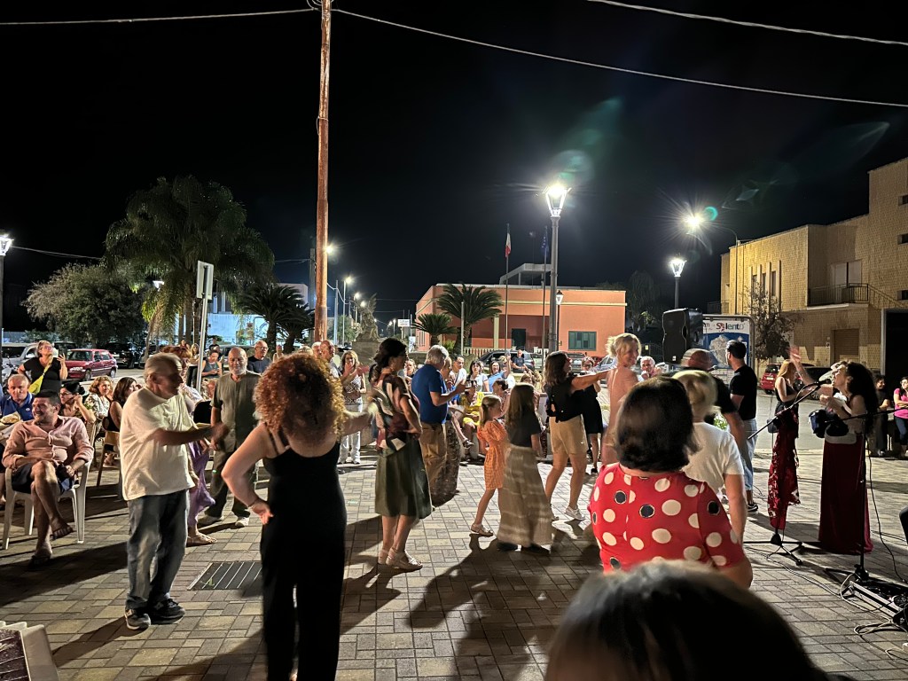 That evening, we saw a sign at the local cafe, and there was no stopping us. Thursday night rolled around and we went to the cafe. The setting sun said its last goodbye by throwing orange across the sky, breathing pink into the clouds, and finally set a lovely yellow hue over the happy town. Then, everything sped up. We ordered dinner, and had a cheerful time. The fun started at nine-thirty P.M, or ten because in Italy everything is a little late.